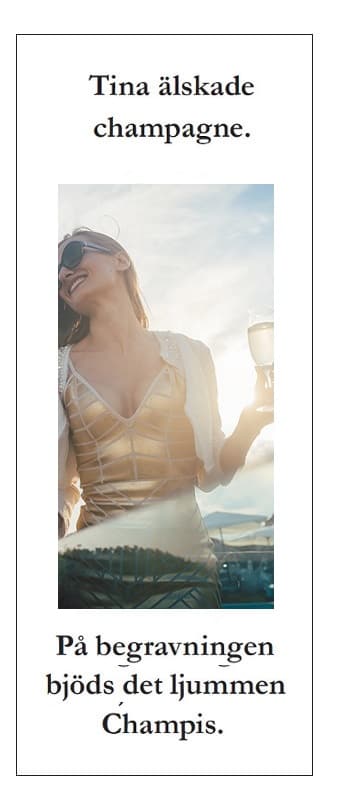 Det liv man under förhoppningsvis många år har levt efter bästa förmåga. Det liv där man har skrattat, gråtit, sjungit, skrikit, sprungit, dansat. Livet som man har älskat. Vi vet vad vi talar om. En vacker dag är det slut, tro oss. Vi ser det varje dag. Och vi önskar därför inget hellre än att många, många fler berättar för sina anhöriga hur de vill ha det. Så att vi som tar hand om det sista avskedet kan göra allt på absolut bästa sätt.