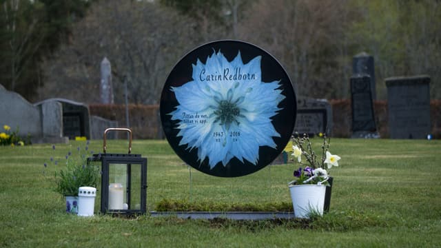 Det är verkligen en vacker och personlig gravsten som lyser upp gravplatsen under årets olika årstider.